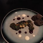 Following the fish was a graffiti on concrete inspired dish. As our waitstaff was explaining this dish, he flubbed and I joked that he could just say, “blah blah blah” and I would understand as he laughed. I moved apart the delicious gray chips on the top to reveal chanterelle mushrooms below for the photo, as when it’s served it isn’t very colorful without the color of the mushrooms peaking out from below the rubble. This dish was well balanced and flavorful.
