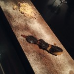 When the Onaga was being served, another dish of fire and coal was placed in front of us, while we thought this was decor again, it turned out to be a main dish again. Out from the embers emerging like the dark phoenix were logs of Japanese Waygu and potato wrapped in seaweed that were being cooked in our presence, then sliced and placed next to the tastiest romaine leaves I think I’ve ever had. They were maybe partially flash frozen?