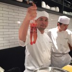 - Chef Daisuke holding amaebi